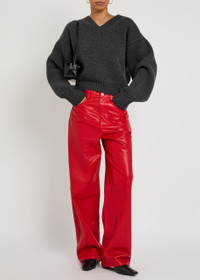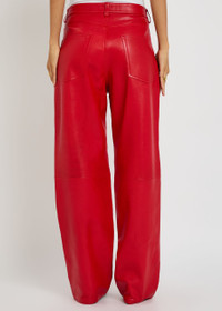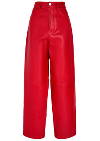 Info & Care Rohe leather trousers Belt loops, five pockets Partially concealed button and zip fastening at front 100% lamb leather Spot clean Size & Fit Inside leg length: 31 inches/;79cm Midweight Mid-rise fit,;wide-leg cut Model is 5'10"/ 178cm and wears a size;FR36