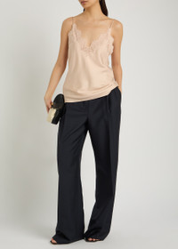 Info & Care Rohe trousers wool-blend trousers Belt loops, pleats at waist, pressed crease through legs, two faux slit pockets at back Concealed hook, button and zip fastening at front 73% virgin wool, 26% mohair wool Dry clean Size & Fit Inside leg length: 34 inches/ 86cm Midweight Mid-rise fit, straight-leg cut Model is 5'10"/ 178cm and wears a size;FR36