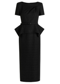 Roland Mouret Belted Peplum Tweed Midi Dress