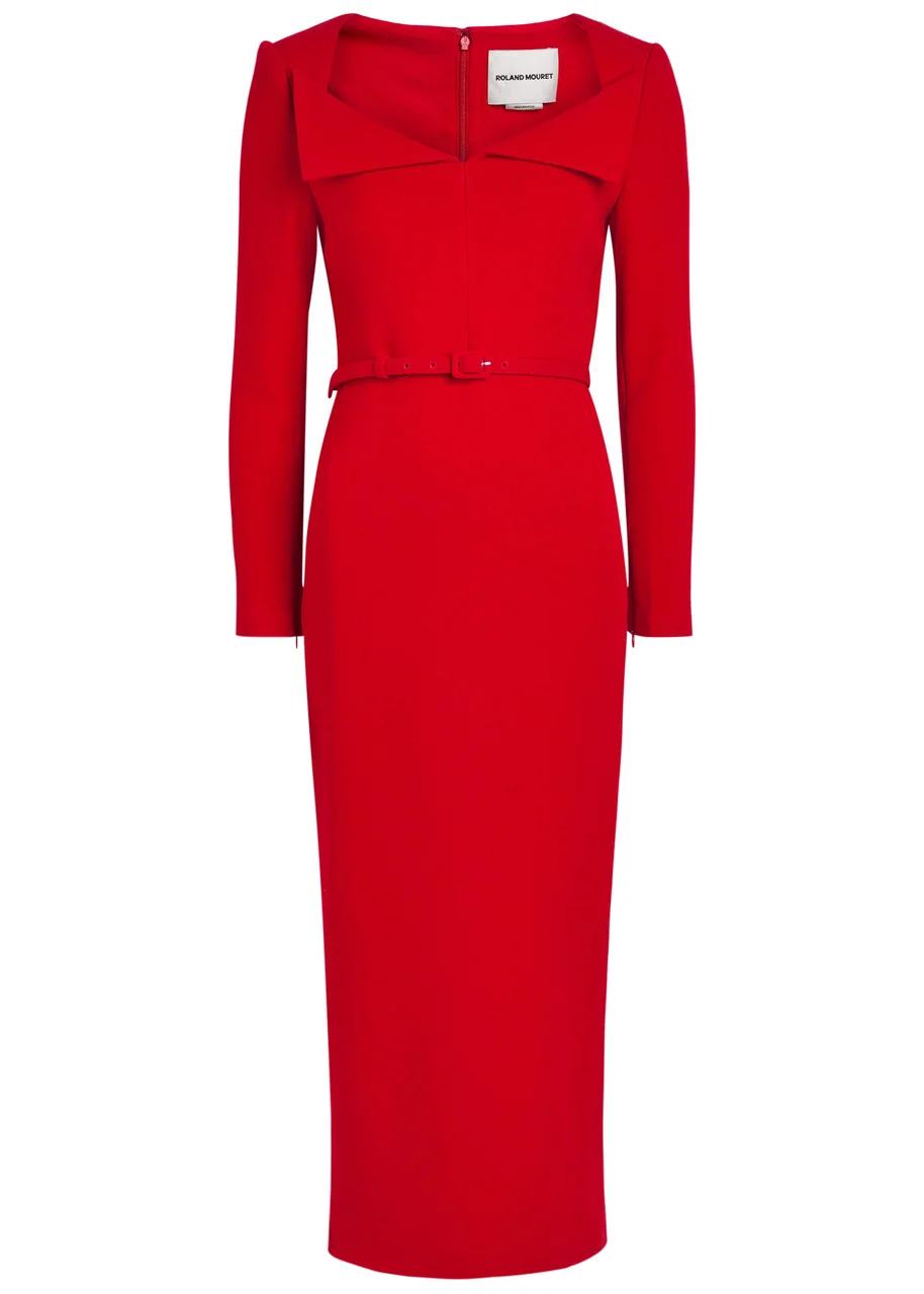 Info & Care Roland Mouret wool dress Square-neck with collar-effect trim, zip-fastening cuffs, belt loops,;detachable belt,;back vent,;fully lined Concealed hook and zip fastening at back 100% wool; lining: 95% viscose, 5% elastane Dry clean Size & Fit Length shoulder to hem: 50 inches/ 127cm Midweight Slim fit, use belt to cinch waist Straight cut Model is 5'10"/ 178cm and wears a size;UK8