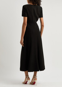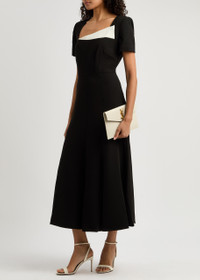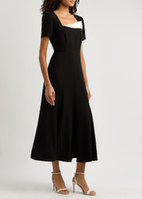 Info & Care Roland Mouret wool dress Contrasting asymmetric panel at square-neck, padded shoulders, darted waist, partially lined Concealed zip fastening at back 60% acetate, 40% polyester; lining: 100% polyester Spot;clean Size & Fit Length shoulder to hem: 50.5 inches/ 128cm Midweight Slim fit, loose skirt Model is 5'9"/ 175cm and wears a size UK8