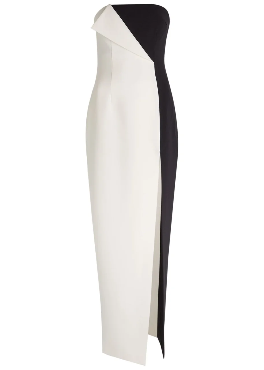 Ronny Kobo River Colour-block Strapless Crepe Midi Dress