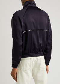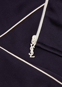 INFO & CARE - Saint Laurent jersey jacket - High-neck, contrast piped trims, two side slip pockets, dropped shoulders, designer plaque at zip pull, elasticated trims, two internal slip pockets, fully lined - Zip fastening through front - 71% acetate, 29% viscose; lining: 100% cupro - Dry clean SIZE & FIT - Length shoulder to hem: 25 inches/ 63.5cm - Midweight - Regular fit - Model is 6'3"/ 191cm, chest size 38 inches and wears a size IT48/ UK38
