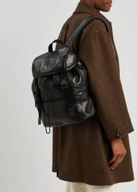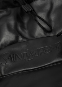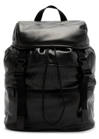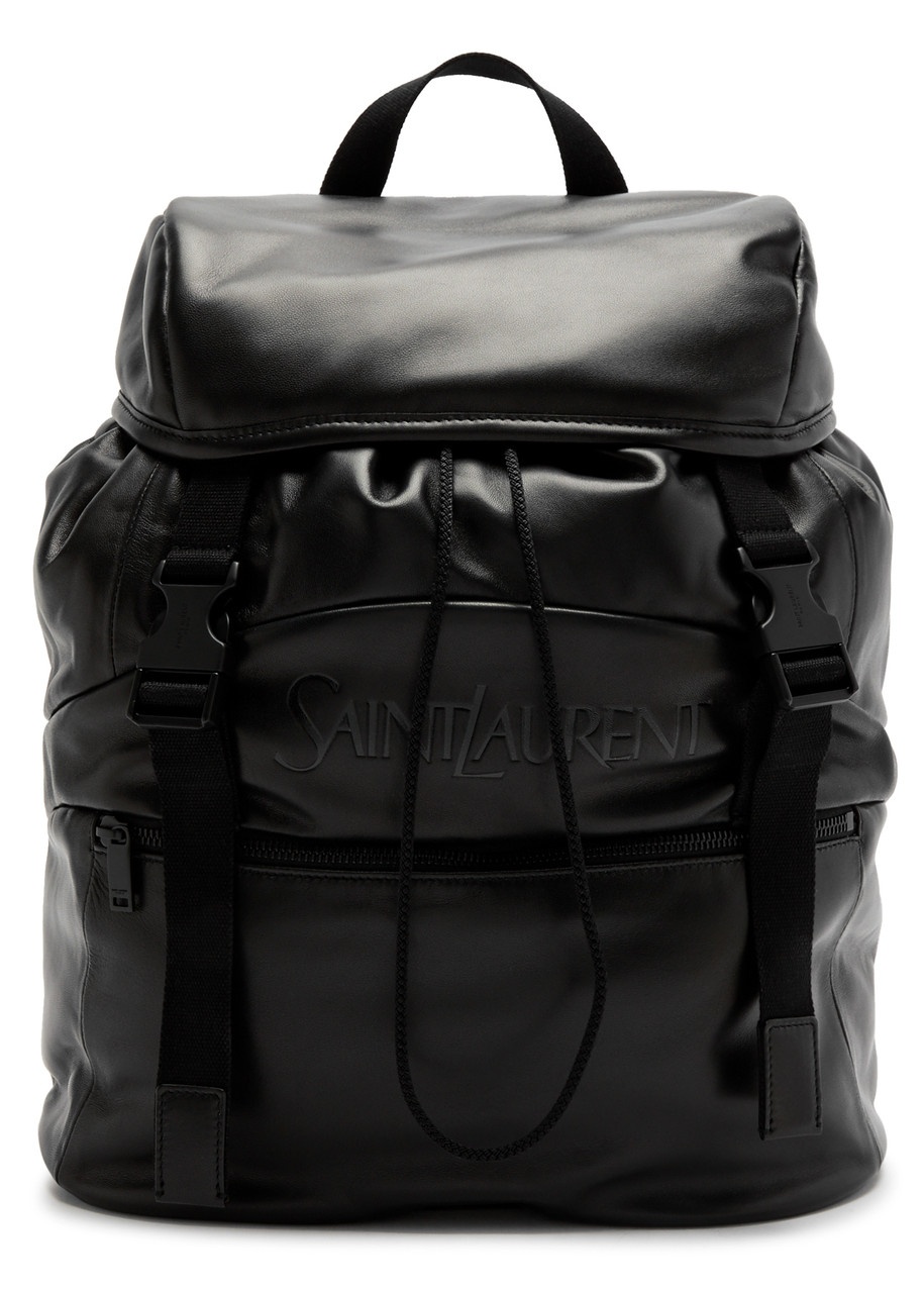 INFO & CARE - Saint Laurent leather backpack - Canvas top handle, two adjustable shoulder straps, designer plaque at canvas back panel, debossed designer logo at front, zip-fastening front pocket, designer-engraved hardware, internal slip pocket, zip-fastening pocket, fully lined - Partially concealed drawstring and buckle fastenings at front SIZE & FIT - Width: 13 inches/ 33cm - Height: 15.5 inches/ 39.5cm - Depth: 7.5 inches/ 19cm - Top handle drop: 2.5 inches/ 6.5cm