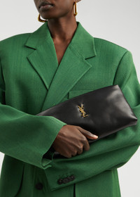 Info & Care Saint Laurent leather pouch; Padded, designer plaque, internal slip pocket, fully lined Zip fastening across top; Size & Fit Width: 10.5 inches/ 26.5cm; Height: 5.5 inches/ 14cm; Depth: 1.25 inches/ 3cm;