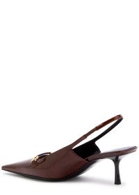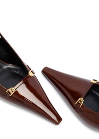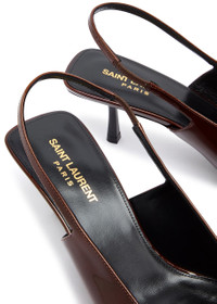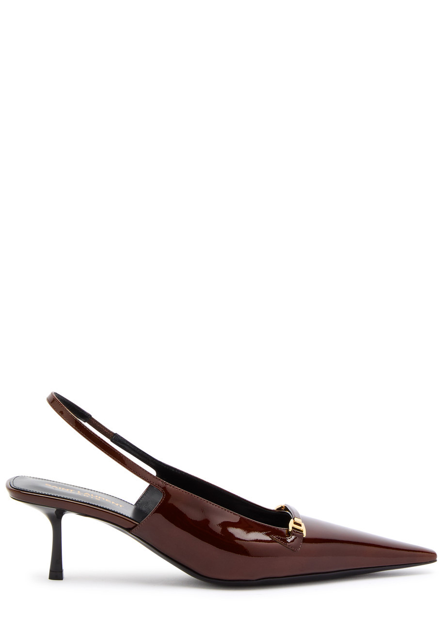 Info & Care Saint Laurent patent leather pumps; Heel measures approximately 2.5 inches/ 55mm Horsebit strap embellishment, pointed square toe; Partially elasticated slingback strap; Size & Fit Narrow across the toe Only available in full sizes, go up to the nearest whole size if you take a half size;