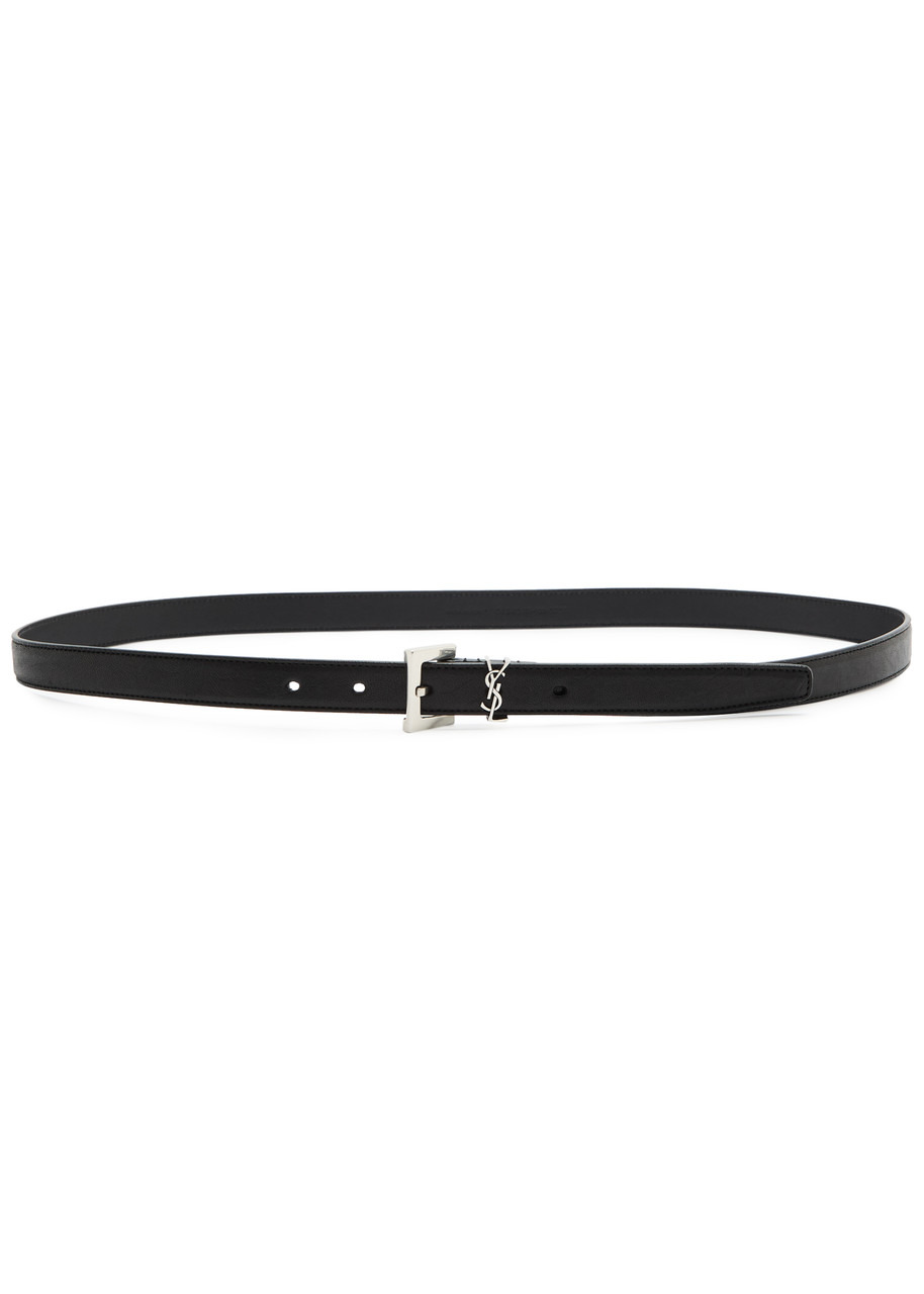 Info & Care Saint Laurent grained leather belt Designer plaque Adjustable buckle fastening Size & Fit Width: 2cm; Plaque dimensions: 2.5cm x 1cm