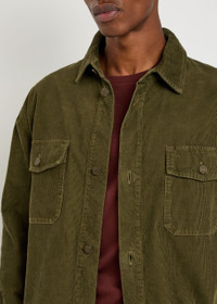 Info & Care Saint Laurent corduroy overshirt Button-fastening cuffs, button-fastening chest flap pockets, side splits, designer-engraved hardware Button fastenings through front; 100% cotton Machine wash Size & Fit Length shoulder to hem: 28.5 inches/ 72.5cm Midweight Relaxed fit Model is 6'1"/ 185cm, chest size 38.5 inches and wears a size medium