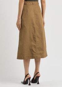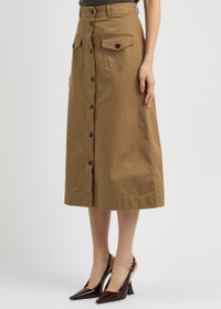 Info & Care Saint Laurent cotton-twill skirt Belt loops, two button-fastening front flap pockets Button-fastenings through front 100% cotton Dry clean Size & Fit Length waist to hem:;32 inches/ 81cm Midweight; A-line cut Model is 5'10"/ 178cm and wears a size FR36