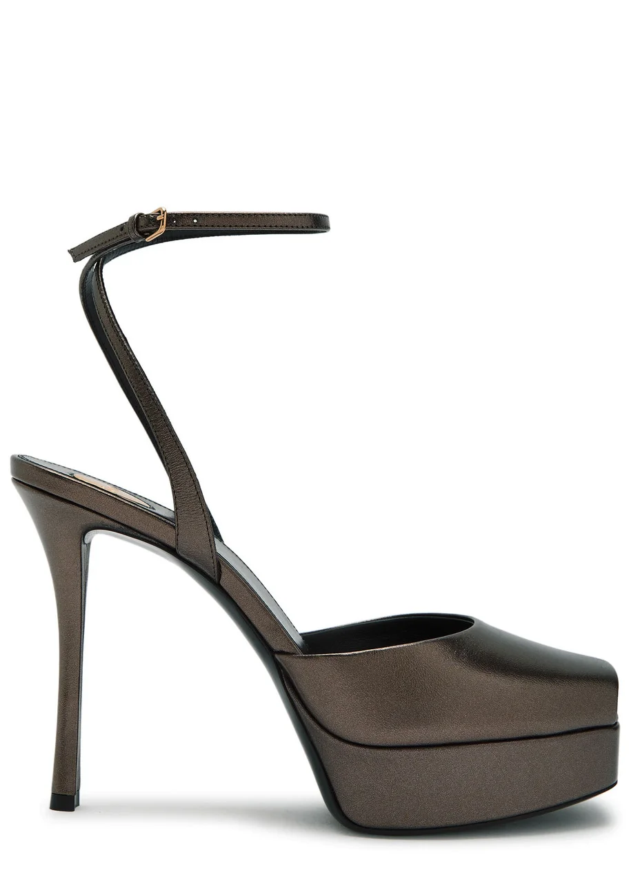 Saint Laurent La Scandale 85 Metallic Leather Sandals