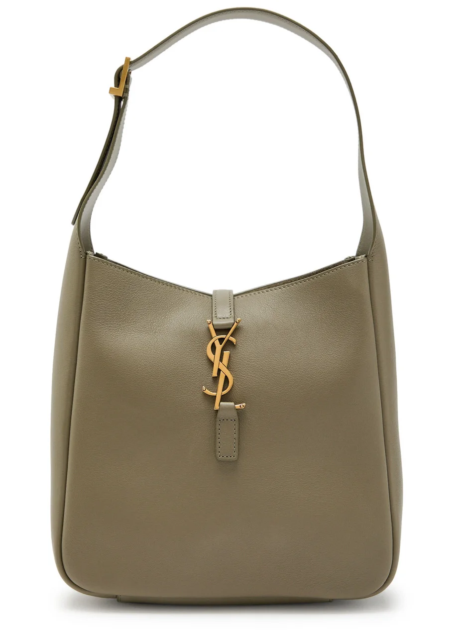 Info & Care Saint Laurent grained leather hobo bag; Adjustable shoulder strap, designer plaque, internal zip-fastening pouch, fully lined; Logo hook fastening at open top Size & Fit Width: 8.5 inches/ 21.5cm; Height: 8 inches/ 20.5cm; Depth: 3.5 inches/ 9cm; Min. shoulder strap drop: 8 inches/ 20.5cm Max. shoulder strap drop: 9 inches/ 23cm;