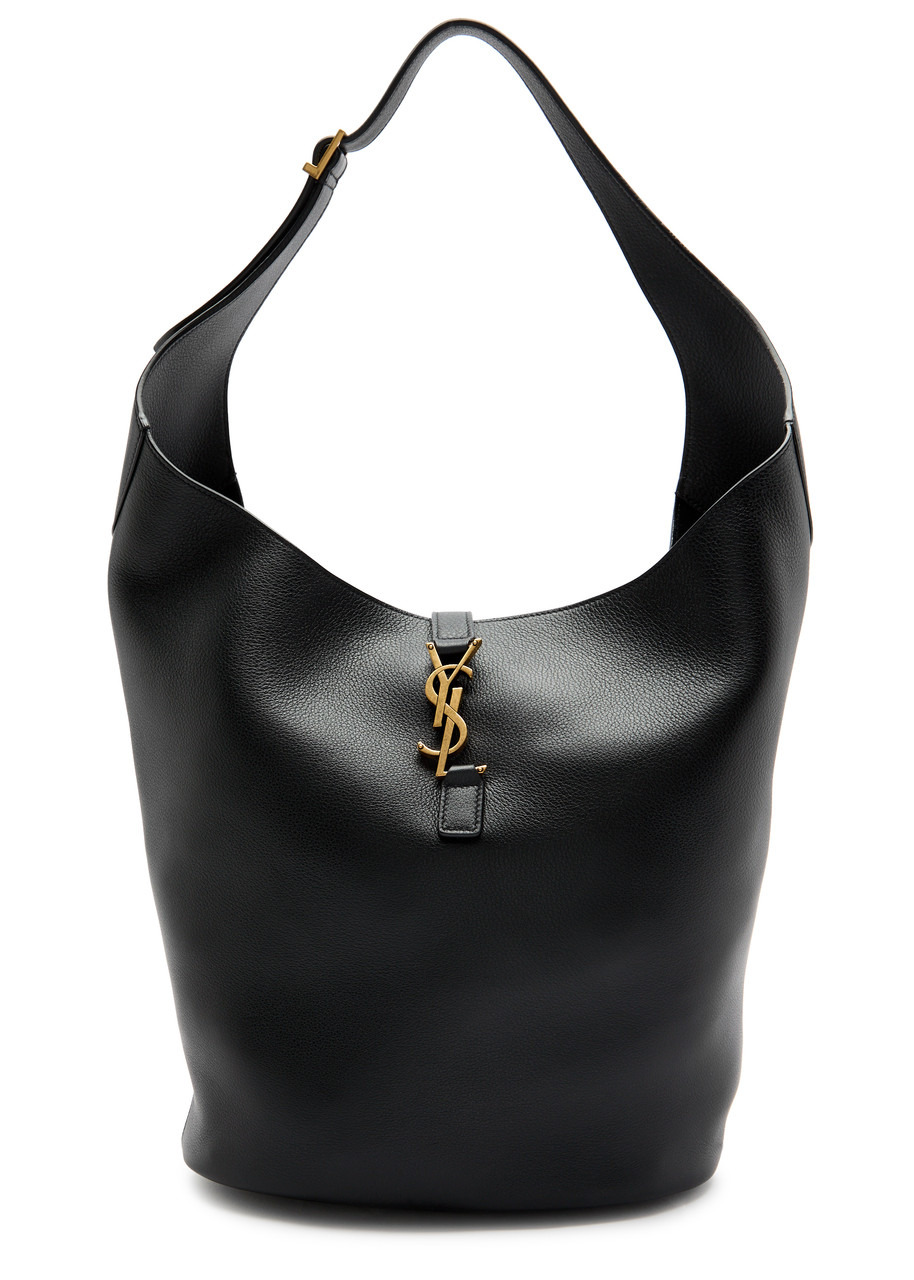 Info & Care Saint Laurent leather bucket bag Adjustable buckle-fastening shoulder strap, designer plaque, feet, internal zip-fastening pouch, suede lining Hook fastening strap at open top Size & Fit Width: 10 inches/ 25.5cm Height: 12.5 inches/ 31.5cm Depth: 5.5 inches/ 13.5cm Shoulder strap;drop: 10 inches/ 25.5cm