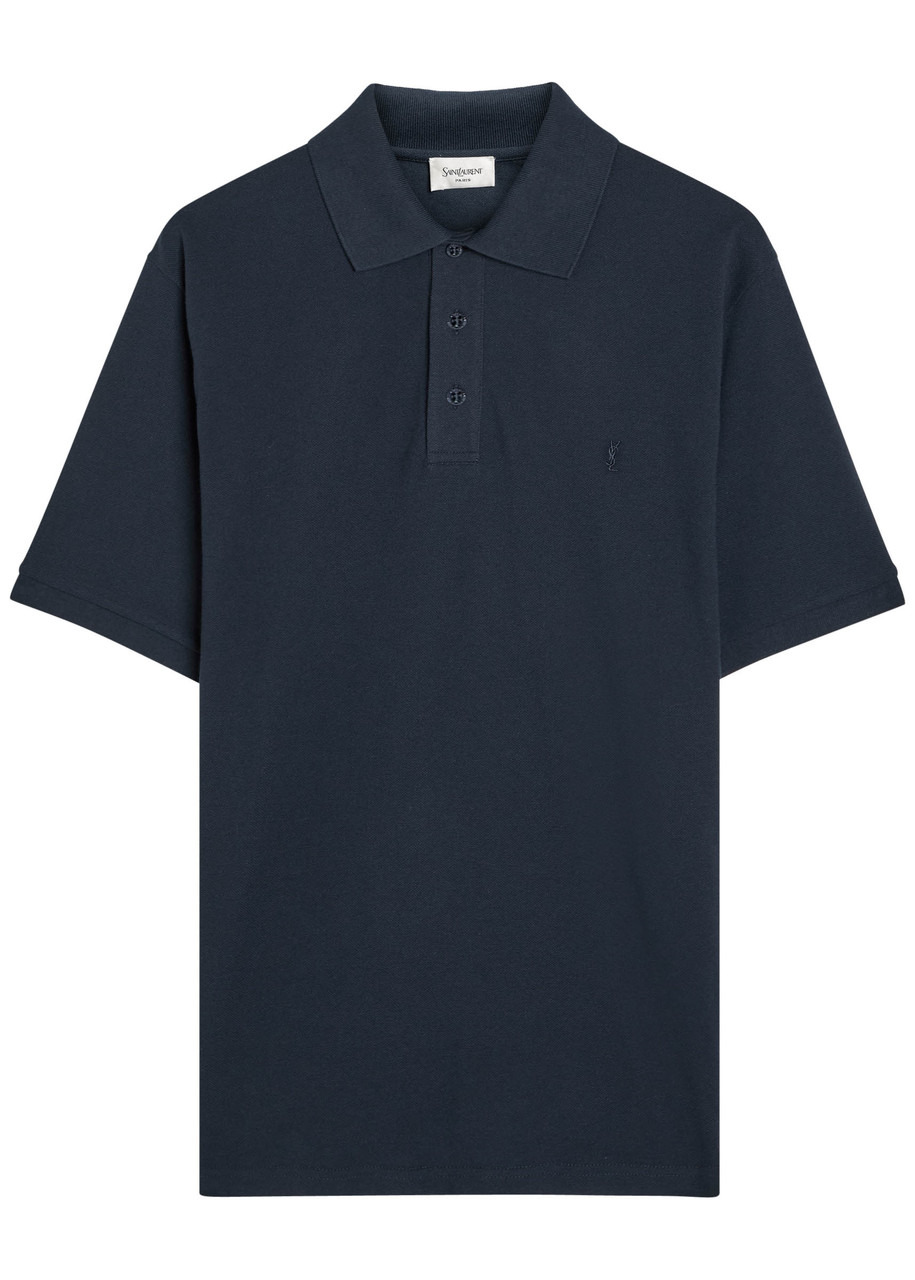 Info & Care Saint Laurent pique cotton-blend polo shirt; Button-fastening neck, embroidered logo at chest, side splits at hem Slips on 50% cotton, 50% polyester Machine wash Size & Fit Length shoulder to hem: 26 inches/ 66cm Midweight Regular fit Model is 6'1"/ 185cm, chest size 38.5 inches and wears a size medium