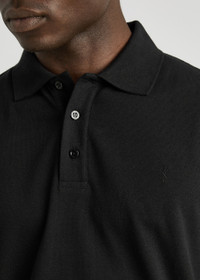 Info & Care Saint Laurent;pique cotton polo shirt Button-fastening neck, embroidered designer logo at chest, ribbed cuffs, side splits, longer back hem Slips on 50% cotton, 50% polyester; Machine wash Size & Fit Length shoulder to hem front: 24.5 inches/ 62.5cm; back: 26.5 inches/ 67.5cm Midweight Regular fit Model is 6'1"/ 185cm, chest size 38 inches and wears a size medium