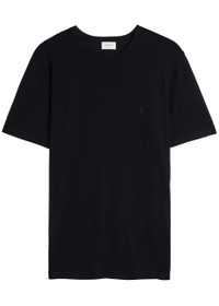 Info & Care Saint Laurent wool T-shirt Crew-neck, embroidered designer crest Slips on 100% wool Hand wash Size & Fit Length shoulder to hem: 27 inches/ 68.5cm Midweight Relaxed fit Model is 6'1"/ 185cm, chest size 38.5 inches and wears a size medium