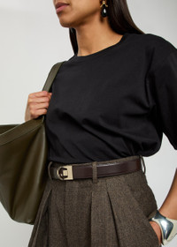 Info & Care Saint Laurent glossed leather belt Crocodile effect, logo-engraved hardware Adjustable push-stud fastening Size & Fit Width: 3cm