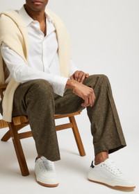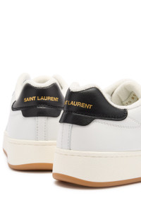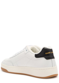 Info & Care Saint Laurent leather sneakers; Panelled, logo-debossed padded tongue, perforated details, designer stamp at side and heel panel, padded heel, terry lining, embossed logo at textured rubber midsole, rubber sole, round toe; Lace-up front; Only available in full sizes, go up to the nearest whole size if you take a half size Size & Fit Only available in full sizes, go up to the nearest whole size if you take a half size