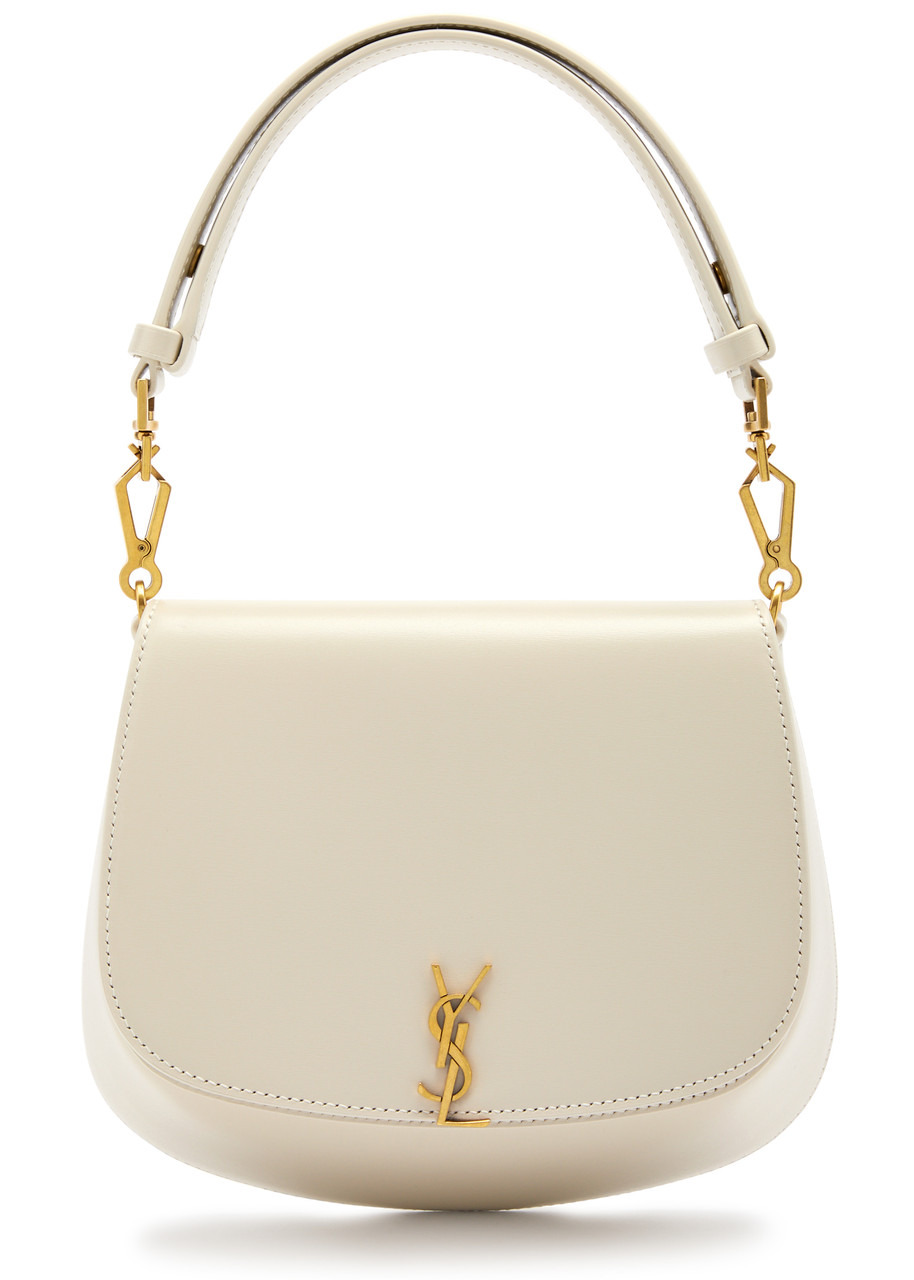 Info & Care Saint Laurent leather top handle bag Detachable adjustable top handle strap, designer plaque, internal slip pocket, fully lined; Concealed magnetic press-stud fastening at flap front Presented in a designer-stamped box; Size & Fit Width: 8 inches/ 20.5cm Height: 6 inches/ 15.5cm Depth: 3 inches/ 7.5cm Min. shoulder strap drop: 5.5 inches/ 14cm Max. shoulder strap drop: 9.5 inches/ 24.5cm