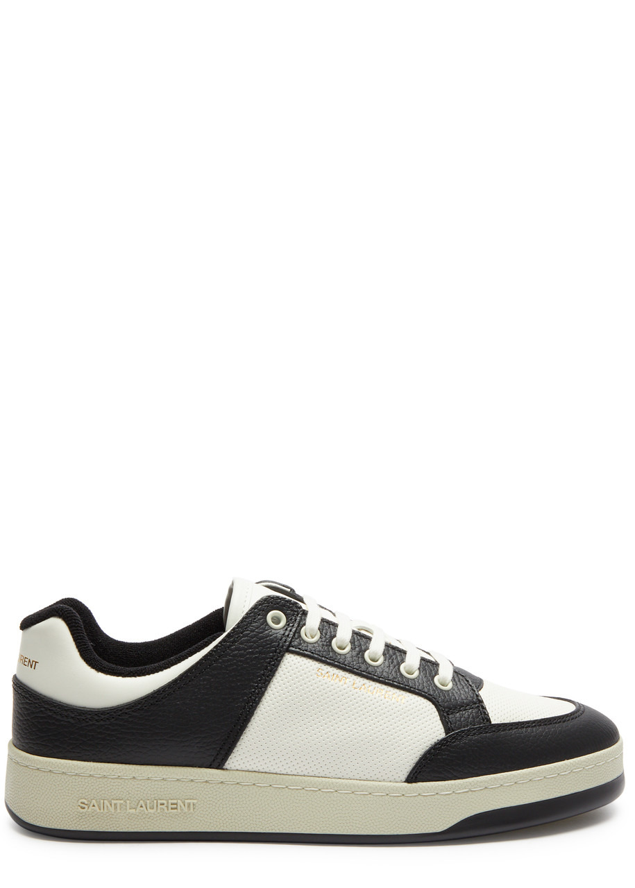 INFO & CARE - Saint Laurent grained leather sneakers - Designer-stamped tongue, panelled, designer stamp at side and heel, padded heel, perforated details, terry lining, embossed designer plaque at textured midsole, rubber sole, round toe - Lace-up front SIZE & FIT - Only available in full sizes, go up to the nearest whole size if you take a half size