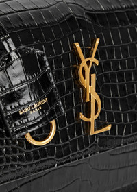 STYLE NOTES An undeniable classic, Saint Laurent’s Sunset bag is a wardrobe staple that you’ll never want to be without. Proudly adorned with the house iconic logo plaque, this glossed leather design is worked with an embossed crocodile-effect finish and effortlessly swings from gold-tone shoulder straps. INFO & CARE - Saint Laurent glossed leather shoulder bag - Chain and leather shoulder strap, detachable designer hanging tag with keyring embellishment, crocodile-effect, designer plaque, back slip pocket, concealed patch pocket at flap front, two internal compartments, internal slip pocket, fully lined - Concealed magnetic press-stud fastening at front flap SIZE & FIT - Width: 8.5 inches/ 21.5cm - Height: 6.25 inches/ 16cm - Depth: 2.5 inches/ 6.5cm - Shoulder strap drop: 11.5 inches/ 29cm
