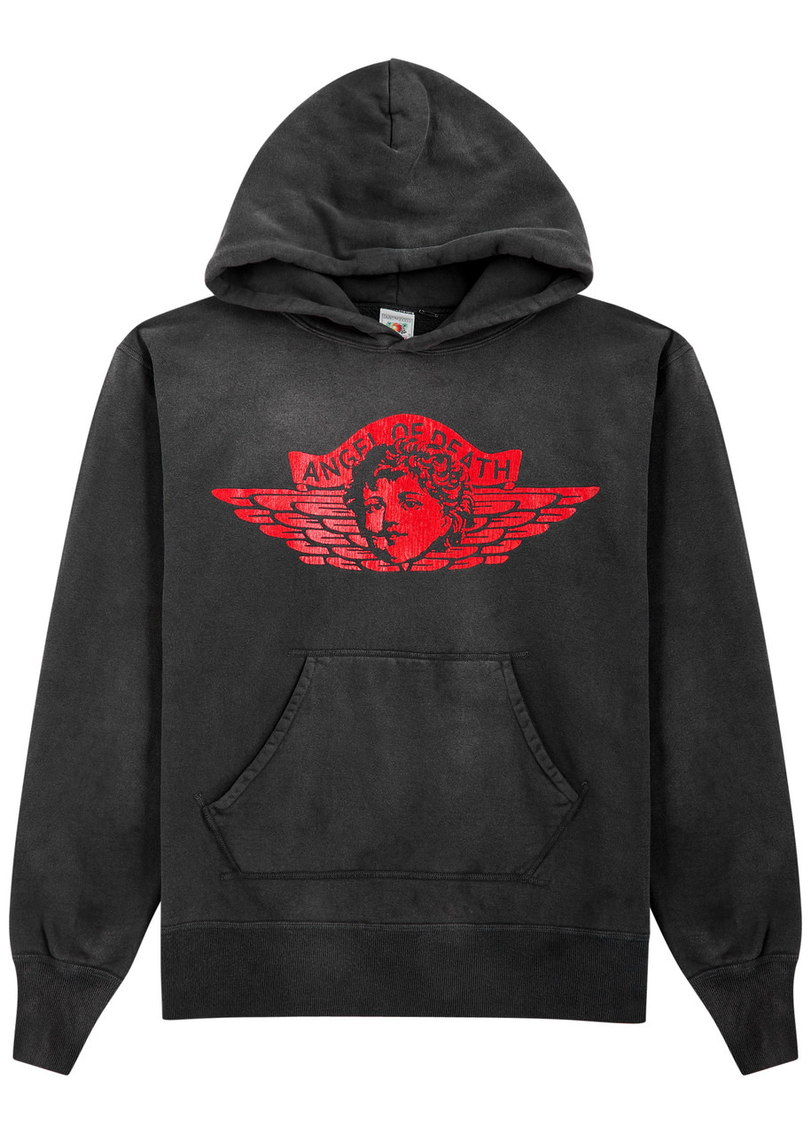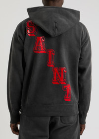 INFO & CARE - Saint MXXXXXX cotton sweatshirt - Hood, printed front, logo print at back, dropped shoulders, pouch pocket, ribbed trims, distressed details, faded finish - Slips on - 100% cotton - Hand wash SIZE & FIT - Length shoulder to hem: 27 inches/ 68.5cm - Midweight - Relaxed fit - Model is 6'1"/ 185cm, chest size 38 inches and wears a size medium