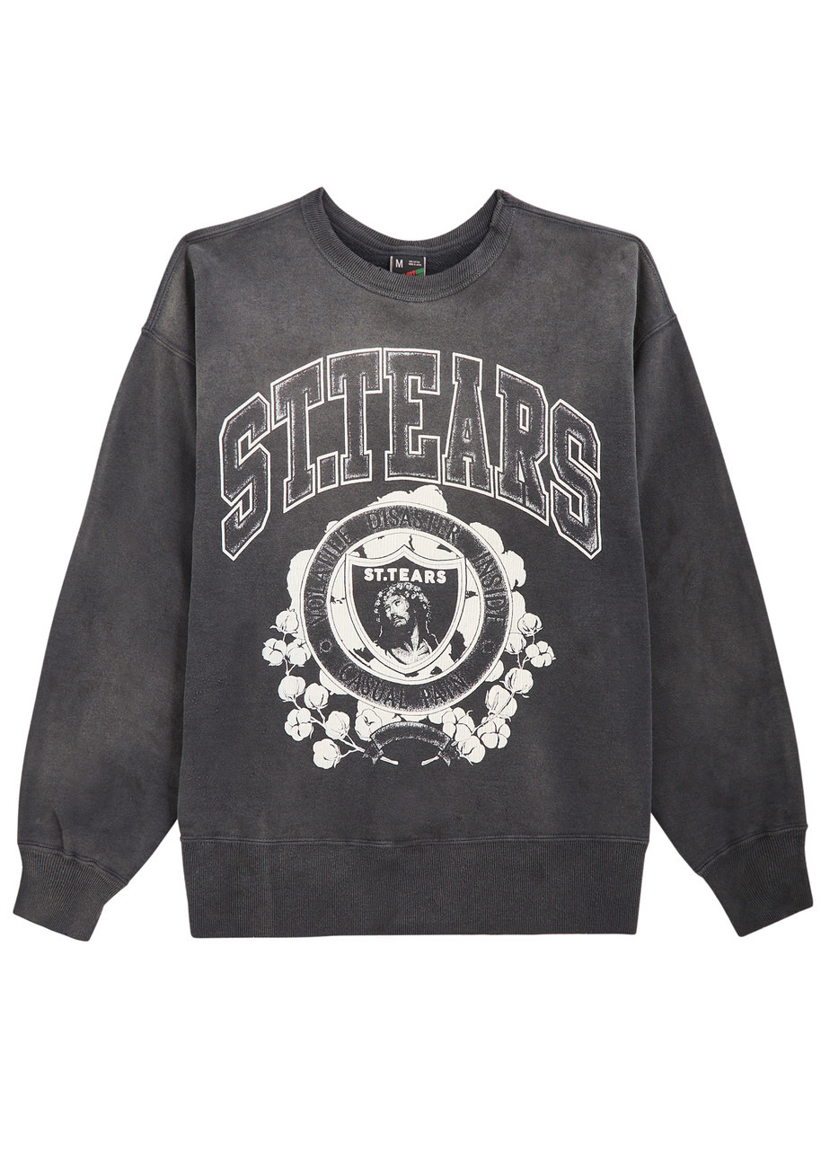 + Denim Tears Saint Tears Distressed Printed Cotton-Jersey Sweatshirt