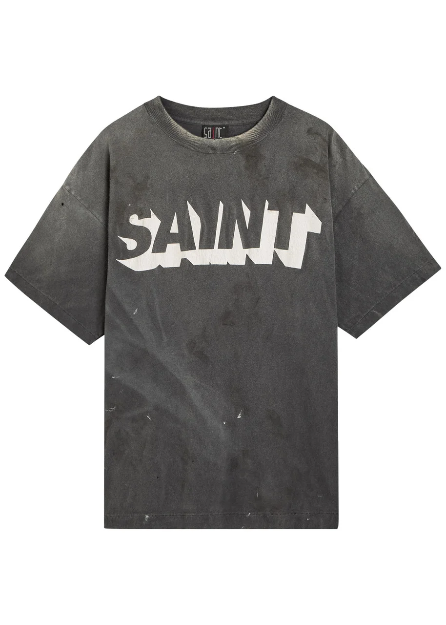 Saint Mxxxxxx Alpha Logo-print Distressed Cotton T-shirt