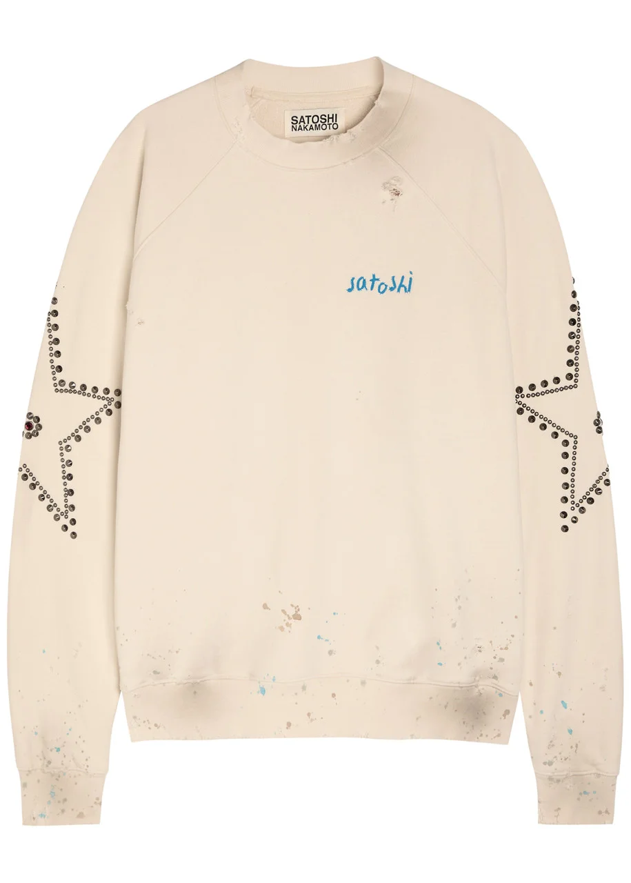Satoshi Nakamoto Star Studded Distressed Cotton Sweatshirt