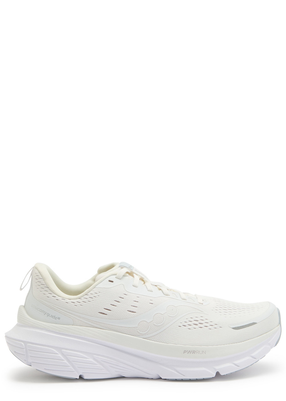 Info & Care Saucony mesh-knit sneakers Rubberised designer plaque at tongue, rubberised panels, printed logo at side, reflective details,;heel tab, padded ankle, PWRRUN cushioning,;PWRRUN+ sockliner, CenterPath technology at gripped rubber sole, round toe Lace-up front Size & Fit