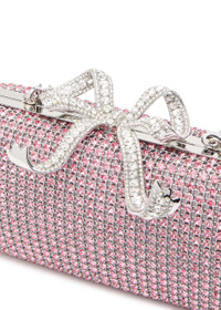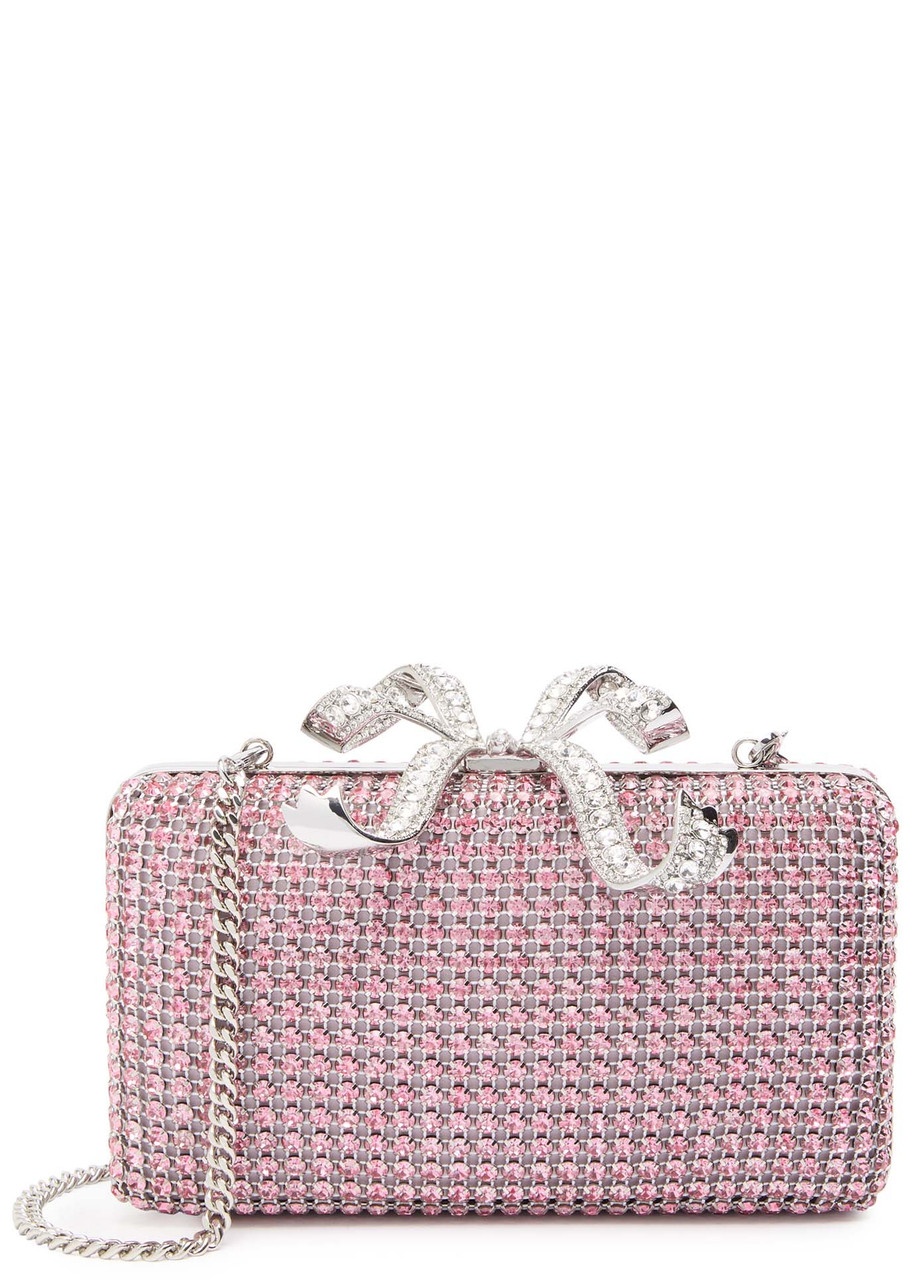 Info & Care Self-Portrait satin box clutch Detachable chain shoulder strap, crystal-embellished overlay, metal bow plaque with crystal embellishments, fully lined Magnetic fastening at top Size & Fit Width: 7 inches/ 18cm Height: 4 inches/ 10cm Depth: 2 inches/ 5cm Shoulder strap drop: 21.5 inches/ 54.5cm
