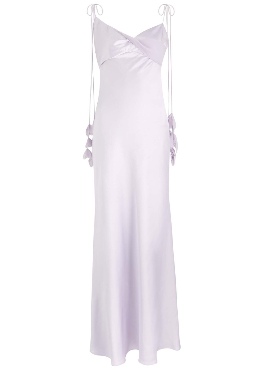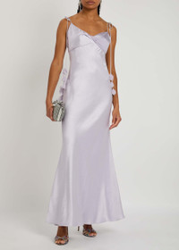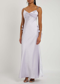 Lilac Flower Satin Maxi Dress