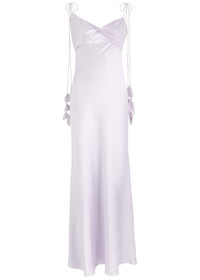 Info & Care Self-Portrait satin dress V-neck,;twisted draped panel at bust, chiffon floral-embellished ties at shoulders Slips on 100% polyester Dry clean Size & Fit Length shoulder to hem: 58.5 inches/ 148.5cm Midweight Slim bodice, relaxed through hips Model is 5'9"/ 175cm and wears a size;UK8
