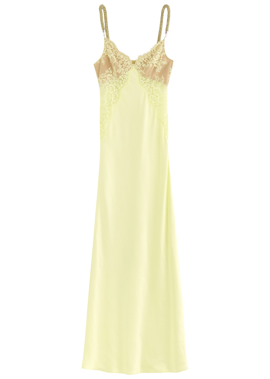 Yellow Lace Satin Maxi Dress