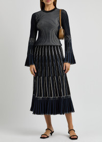 Simkhai Emerie Striped-intarsia Knitted Midi Skirt