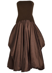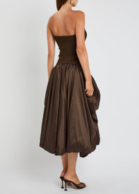 Info & Care Joanathan Simkhai knitted dress Strapless, ribbed bodice, gathered details at waist, shell skirt, side slip pockets, draped sides, curved balloon hem, partially lined Slips on Fabric 1: 83% viscose, 17% elastane; fabric 2: 60% polyester, 40% nylon; lining: 190% nylon Hand wash Size & Fit Length shoulder to hem:;43 inches/ 109.5cm Midweight Slim fit, flared skirt Model is 5'8"/ 173cm and wears a size;small