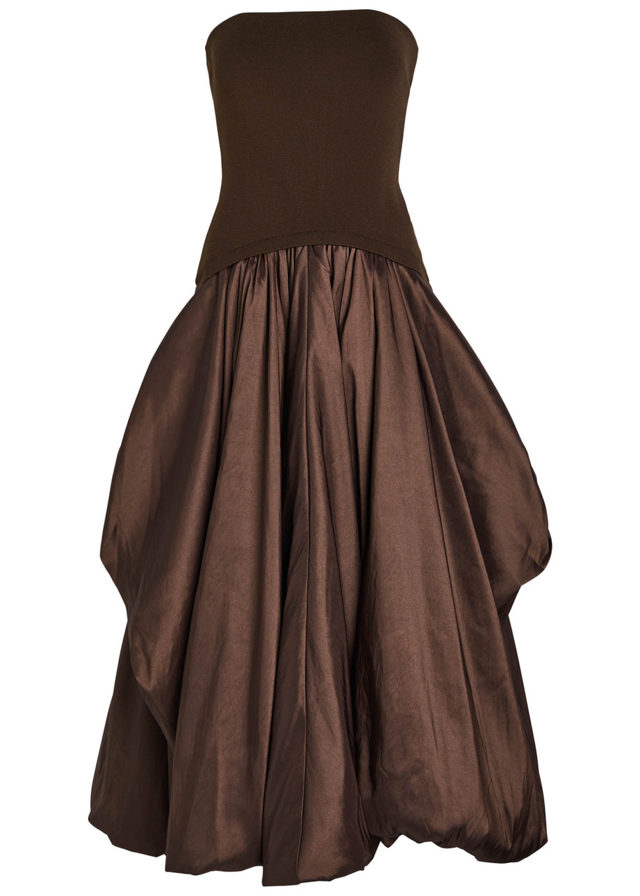 Simkhai Izzy Strapless Ribbed-knit and Shell Midi Dress