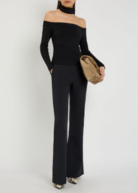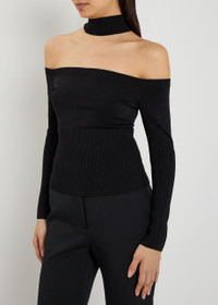 Info & Care Jonathan Simkhai knit top Off-the-shoulder neckline with turtle-neck detail, ribbed trims Slips on 72% rayon, 27% nylon, 1% spandex Dry clean Size & Fit Length shoulder to hem: 16.5 inches/ 42cm Midweight Slim fit Model is 5'10"/ 178cm and wears a size small