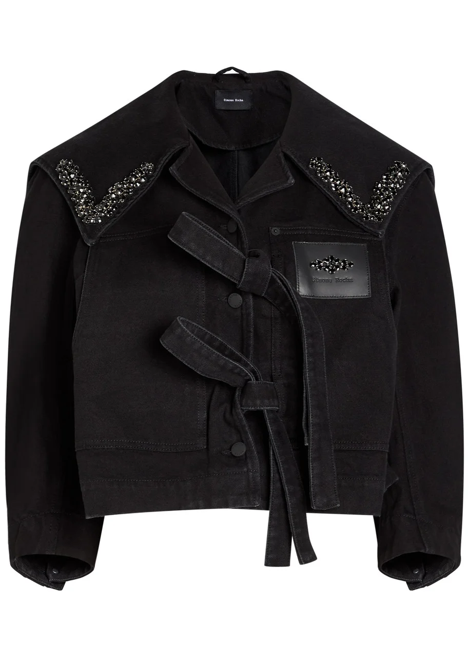 Simone Rocha Crystal-embellished Cropped Denim Jacket