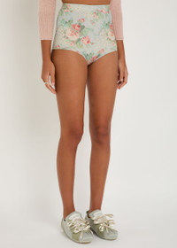 Info & Care Simone Rocha;stretch-knit briefs Floral print, elasticated waistband 70% viscose, 30% stretch polyester Hand wash Size & Fit High-waist fit Model is 5'9"/ 175cm and wears a size;small