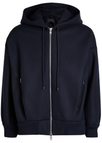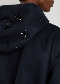 Info & Care Simone Rocha wool-blend bomber jacket Embellished drawstring hood, zip-fastening side pockets, ribbed trims Two-way zip fastening through front 50% virgin wool, 25% polyester, 13% polyamide, 12% polyurethane Dry clean Size & Fit Length shoulder to hem: 25 inches/ 63.5cm Midweight Boxy fit Model is 6'1"/ 185cm, chest size 38.5 inches and wears a size medium