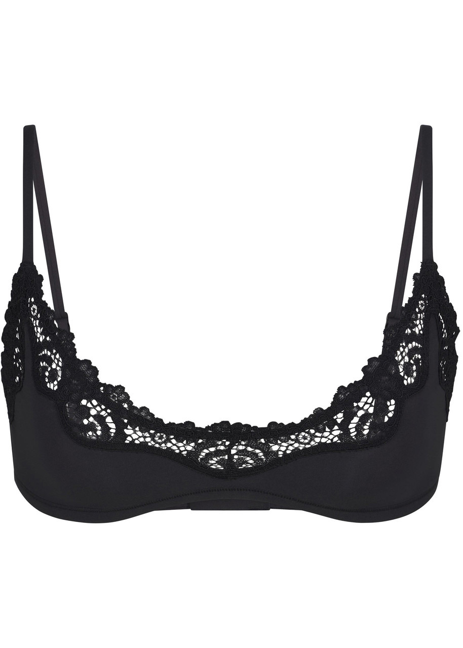 Style Notes This Skims scoop bralette is a pullover style with a second-skin fit and the prettiest stretchy lace details. Features adjustable strap for convenience and is perfect for daily wear. Info & Care Skims sculpt bralette Part of the Fits Everybody collection Scoop-neck, adjustable straps, stretchy lace trim along neckline, underarm and back neck Pullover style (no hook and eye) 76% polyamide, 24% elastane Machine wash cold