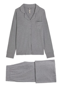 Style Notes This classic top and matching trousers make the perfect pajama set. Made with Skim's signature ultra soft modal rib fabric, the Sleep Top and Sleep;trousers are a lightweight, comfortable sleep and loungewear option. Info & Care Skims stretch-modal;pyjama set Part of the Soft Lounge collection Top: ribbed, camp collar, chest patch pocket, button fastenings through front Trousers: ribbed, elasticated waist, pull on 91% modal, 9% elastane Machine wash cold Size & Fit Length shoulder to hem: 27 inches/ 68.5cm Inisde leg length: 32 inches/ 81cm Midweight Relaxed fit Model is 5'9"/ 175cm and wears a size small