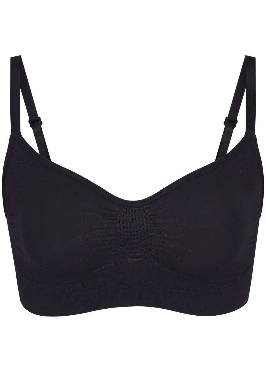 Style Notes Skim's signature;seamless sculpting bralette contours your curves with pique stitching along the front and sides that flatters and defines the bust while offering ultra-strong support. Features a scoop front and adjustable straps for your best fit. Info & Care Skims seamless sculpt bralette Part of the Seamless Sculpt collection Scoop-neck, adjustable straps, pique stitching along centre front and sides Pull on (no hook and eye) 82% nylon, 18% elastane Machine wash cold
