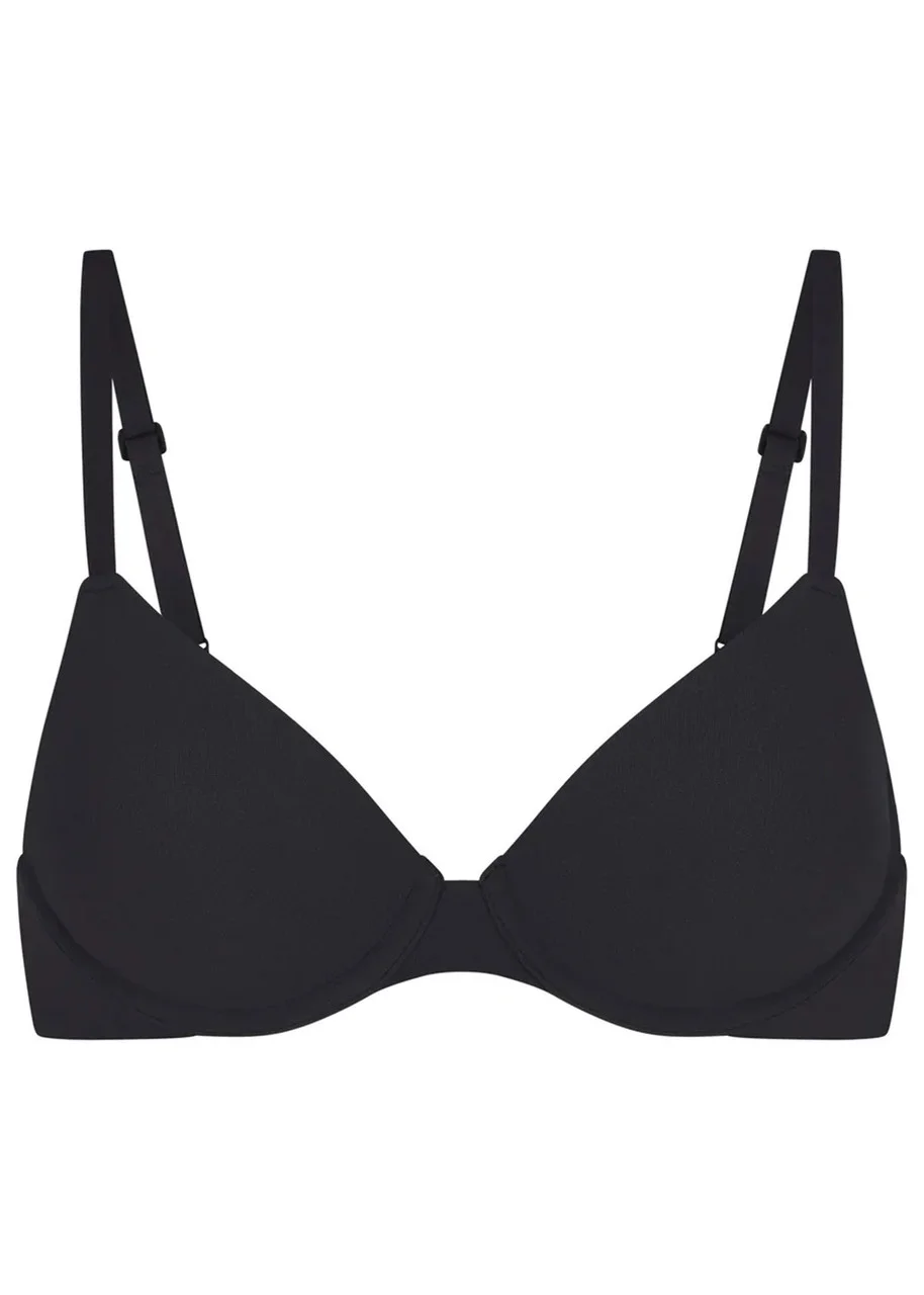 Style Notes This classic foundation with demi coverage has 360-stretch technology for a custom-made fit even when you're between sizes. Made from Skims signature soft fabric with a second-skin feel that makes you forget you're wearing a bra. Offers unparalleled support with its lightly lined cups and flexible underwire that doesn't dig. Features adjustable straps and a hook and eye closure in the back. Info & Care Skims stretch-jersey T-shirt bra Part of the Fits Everybody collection Molded demi coverage, lightly lined cups, adjustable straps, flexible underwire for support, 360 stretch comfort to fit in between sizes Hook and eye fastening 76% polyamide, 24% elastane Machine wash cold