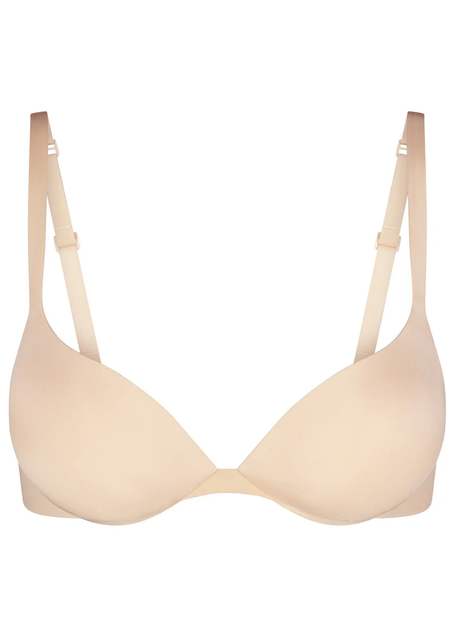 Style Notes The Ultimate Bra redefines traditional push-up bras by enhancing your natural bust shape and completely transforming the look, shape, and fullness of your bust. This bra is made of a super soft sheen microfibre fabric with extra compressive side wings for smoothing. With a comfortable, concealed underwire and premium teardrop shaped foam pads, this bra sits seamlessly under clothing. Info & Care Skims push-up bra Part of the Ultimate collection Soft foam push-up pads for seamless look, lightweight, plunge neckline, concealed underwire with a soft brushed casing, elasticated adjustable straps Hook and eye closure at back 84% nylon, 16% elastane Hand wash cold Size & Fit Designed for a snug fit