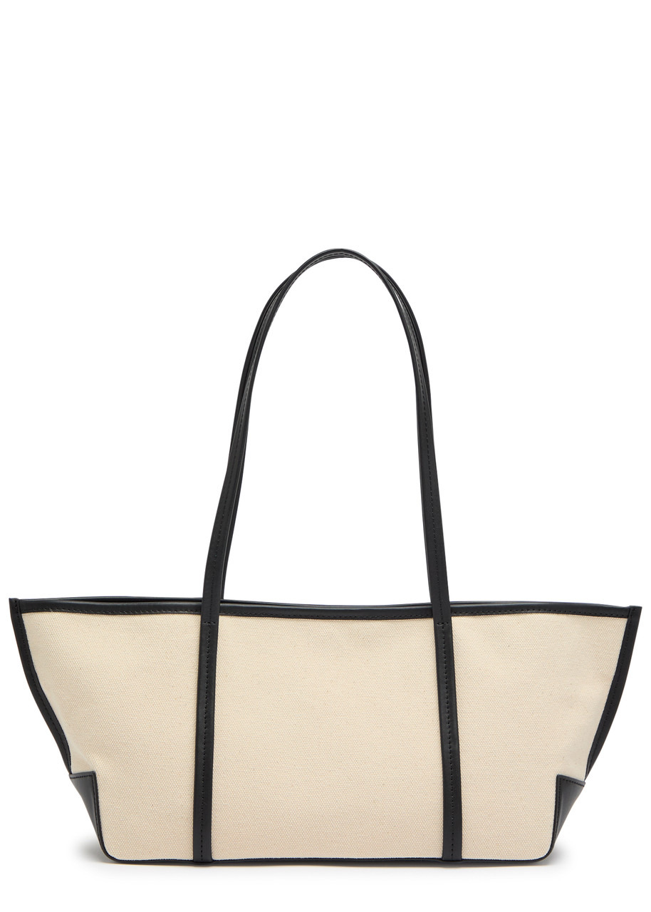 Bateau leather-trimmed cotton-canvas tote Off-white