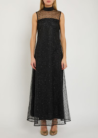 Info & Care Staud tulle dress Sequin embellishments, tie-fastening high-neck, low back, fully lined Concealed zip fastening at back 100% polyester Dry clean Size & Fit Length shoulder to hem: 56.5 inches/ 143.5cm Midweight Slim across bust, relaxed from waist A-line cut Model is 5'10"/ 178cm and wears a size;small