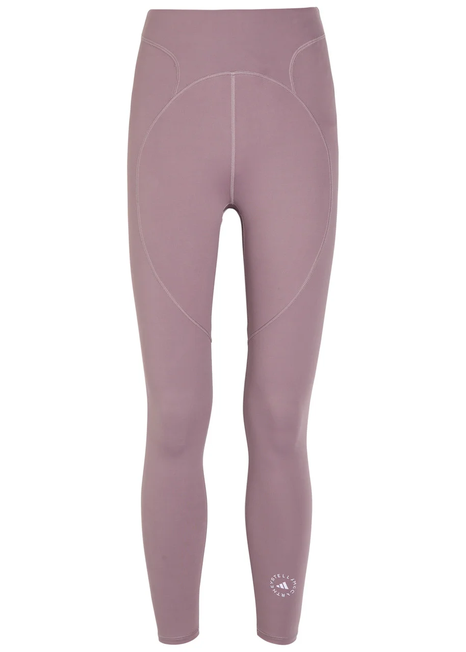 Info & Care adidas X Stella McCartney stretch-jersey leggings Elasticated waistband, exposed seams, logo print at;cuff Pull on 73% recycled polyamide, 23% elastane Machine wash Coordinating items available Size & Fit Inside leg length: 24 inches/ 61cm Midweight Slim fit Model is 5'9"/ 175cm and wears a size small