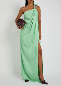 Embellished draped satin gown Mint