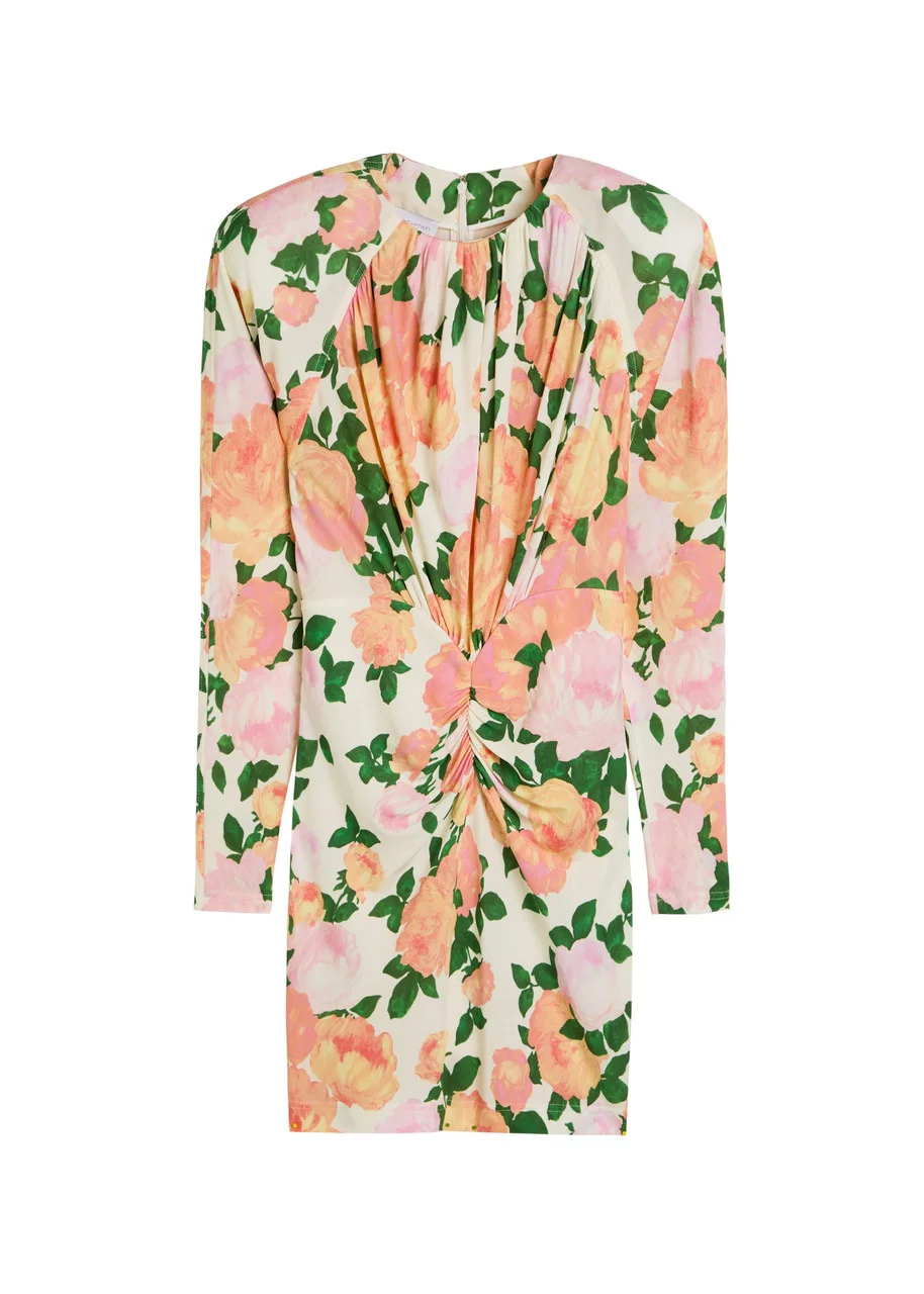 Info & Care Stella McCartney crepe-jersey dress Floral print, round-neck, detachable shoulder pads,;ruched front, pleated details Concealed zip fastening at back 100% viscose Dry clean Size & Fit Length shoulder to hem: 33 inches/ 84cm Midweight Slim fit Model is 5'9"/ 175cm and wears a size;IT40